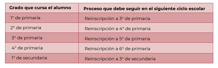 Aceleración: Permite al estudiantado ser admitido a un nivel educativo de forma temprana o bien omitir un grado escolar sin cambiar de nivel educativo. En el siguiente cuadro se muestran los cinco casos en los que se puede realizar la omisión de un grado escolar sin cambiar de nivel educativo: