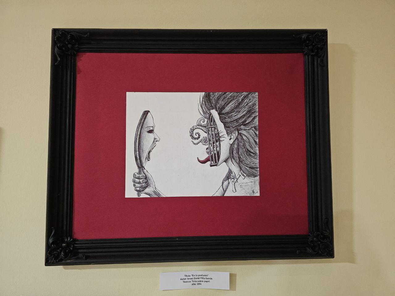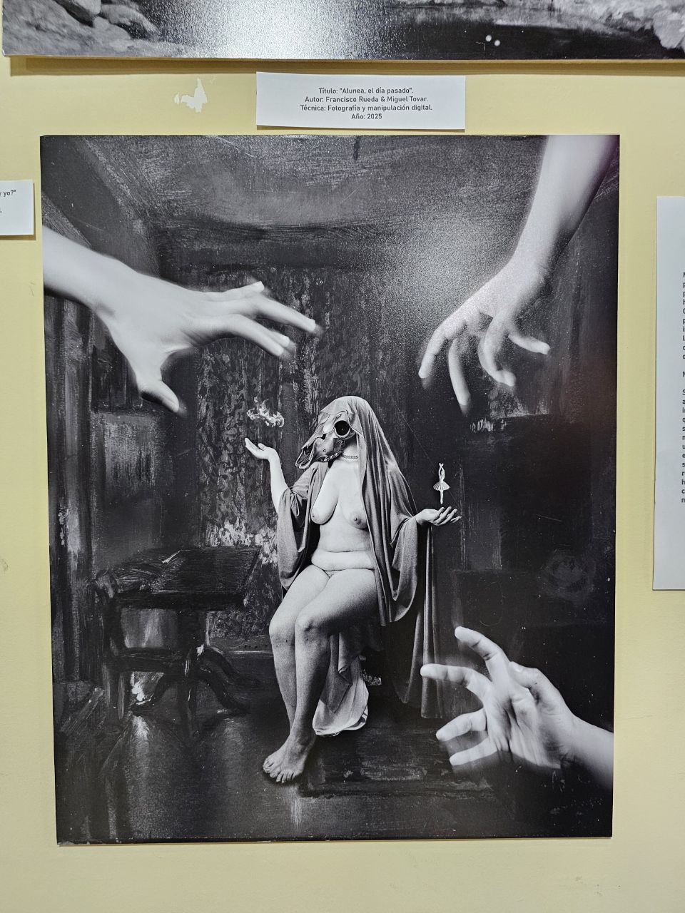 FRANCISCO RUEDA: Lo que más me gusta de la exposición es la variedad. Tenemos desde escultura hasta fotografía, dibujo a mano con tinta, grabado y arte digital. En lo personal, como soy fotógrafo, me fijo mucho en la fotografía: si una imagen me llena el ojo, para mí ya tiene mucho valor. En esta ocasión me gustó mucho el trabajo de Iván Garay. Se nota el esfuerzo y la dirección con modelos, el ambiente oscuro bien logrado. Sé lo difícil que es trabajar con personas reales, y creo que lo que hace Iván tiene mucha fuerza; está creciendo mucho y va a llegar muy lejos. Me impresionó su trabajo.