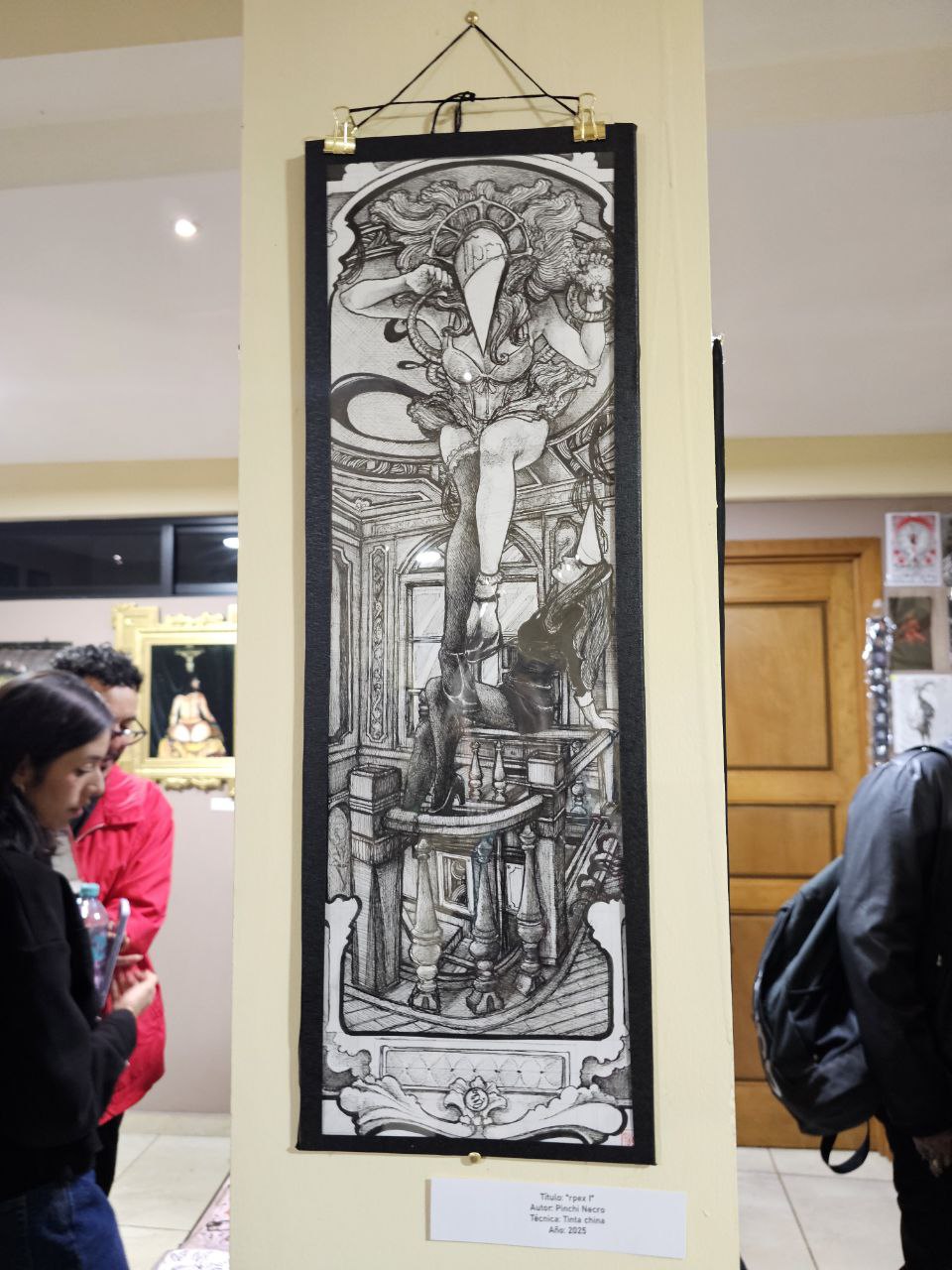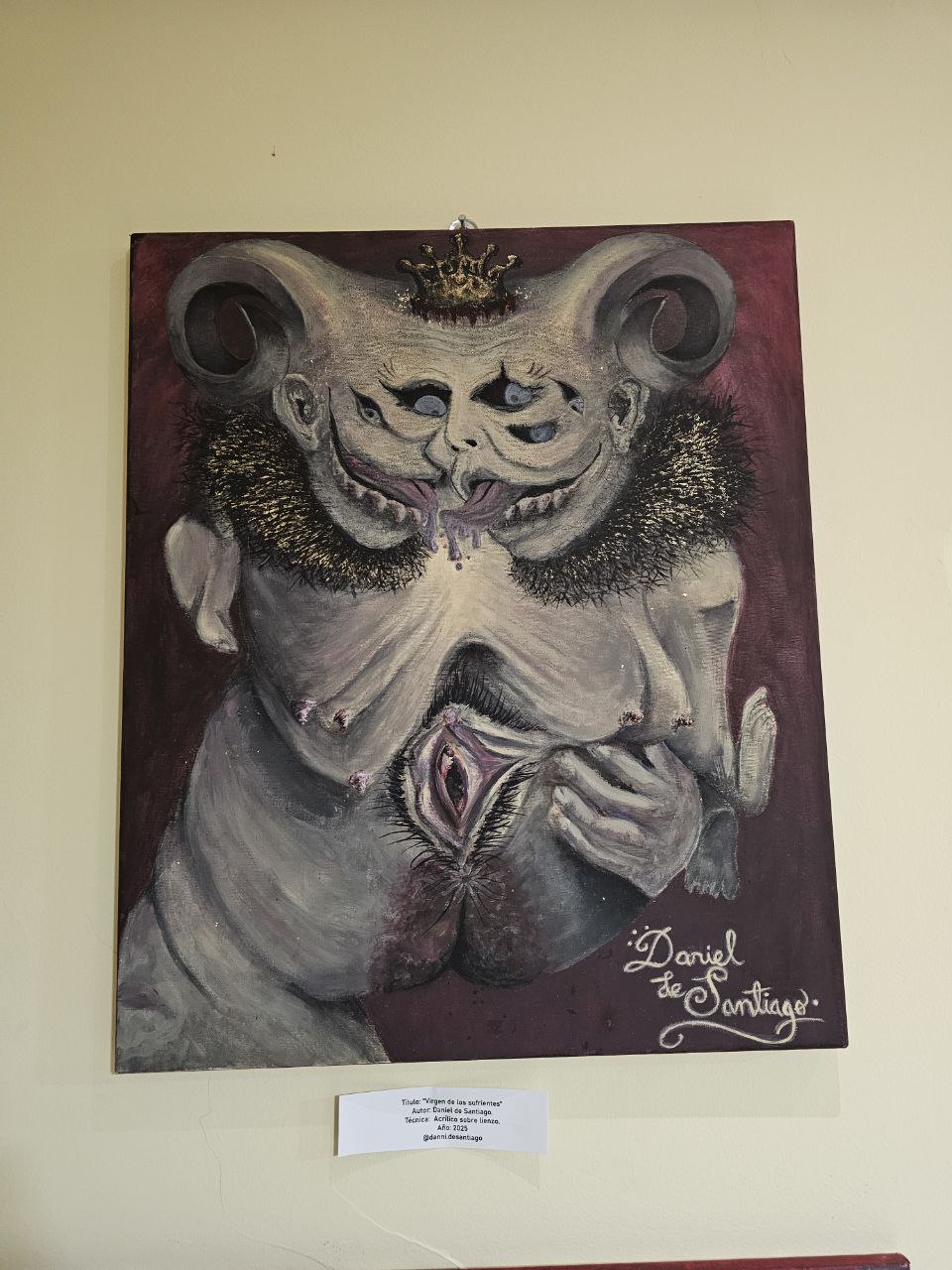 FRANCISCO RUEDA: La primera vez que invitamos a artistas fue a amigos y conocidos de algunos de nosotros, porque veíamos que compartían nuestro estilo: algo oscuro, algo blasfemo. Casi siempre eran uno o dos invitados por exposición. Pero este año decidimos lanzar una convocatoria abierta a todo el público, sin importar el estado o incluso el país, con la intención de abrir un espacio para artistas emergentes y consolidados que quisieran explorar lo oscuro, lo erótico y lo blasfemo. Queríamos que nos acompañaran y que la exposición creciera desde esa diversidad.