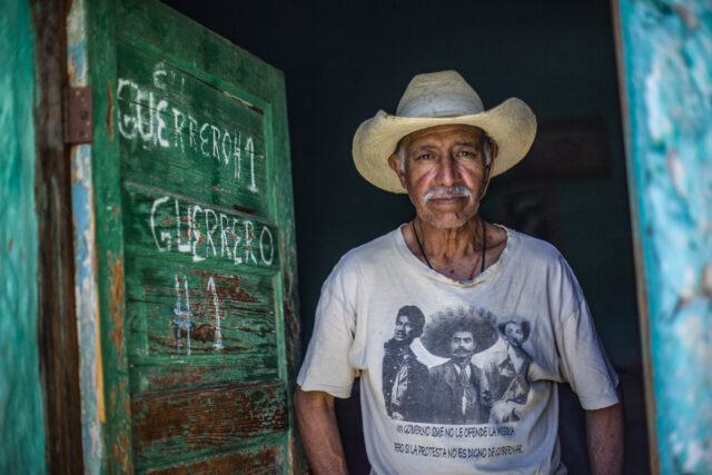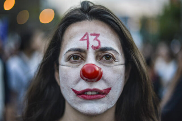 Y justo sucedió que, como ya se estaba dispersando la manifestación, ya nadie fue ni nada, nadie se subió más que yo, y ya fue una foto sencilla, técnicamente hablando, nada más saber tu ISO, la velocidad, etc., y ya, no había mucho que hacer, pero fue una foto que ya después la subí y se publicó en una revista, y fue importante porque uno, o sea, como que mostró la parte del trabajo en equipo, de que a mí me tocaba una parte de toda la cobertura, pero además de que a veces no necesariamente tienes que hacer la gran composición, sino simplemente estar en el momento y hacer la foto, y fue importante porque es como de las fotos que más la gente reconoce, porque es una frase que sintetiza de cierta manera el ambiente que se vivía respecto a la desaparición de los estudiantes, y que después se ha movido mucho, y ha tenido mucha importancia.