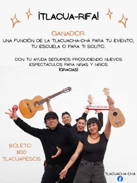 El premio de esta rifa consiste en una función completa de Tlacuacha-chá, ideal para un evento, una escuela o incluso una presentación privada, lo que representa una oportunidad única de llevar teatro y música a distintos espacios. Cada boleto tiene un costo de 100 tlacuapesos y puede adquirirse directamente con cualquiera de las y los integrantes del colectivo o a través de mensaje directo en redes sociales.